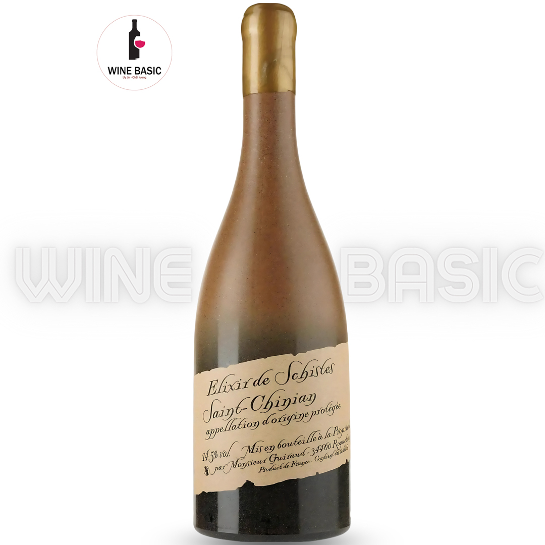 Rượu Vang Elixir De Schistes được phối trộn từ hai giống nho của vùng Saint-Chinian là Syrah và Grenache. Rượu có màu đỏ ruby đậm cùng hương thơm phức hợp của trái cây đen, gia vị và khoáng chất. Vị rượu cân bằng, tannin mượt mà và hậu vị kéo dài.